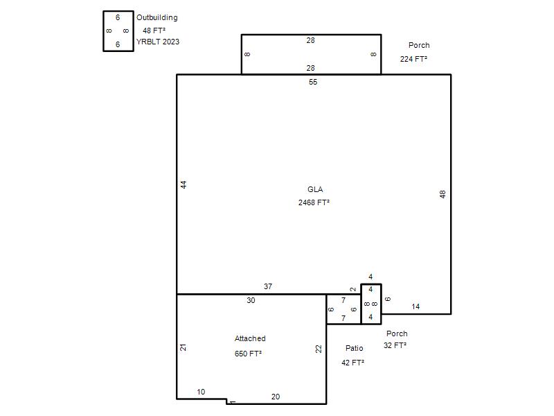 | Garage, Porch, Basement, Storage, Utility etc. (GLA=Gross Living Area GBA=Gross Bldg Area) | ||||
