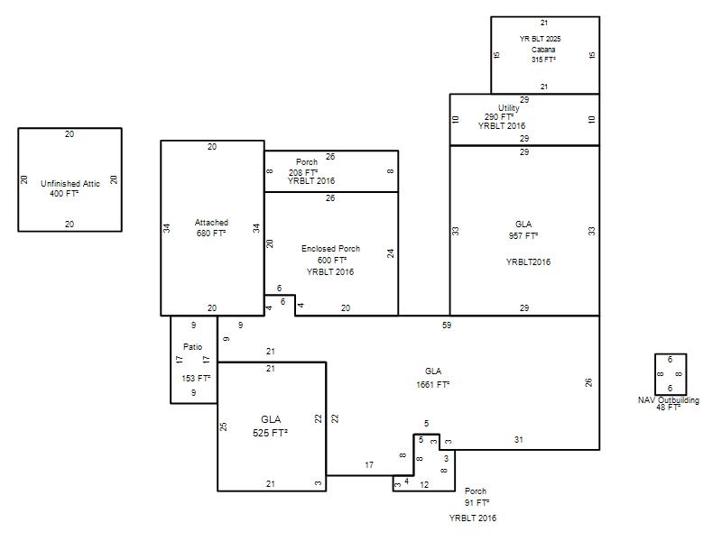 | Garage, Porch, Basement, Storage, Utility etc. (GLA=Gross Living Area GBA=Gross Bldg Area) | ||||