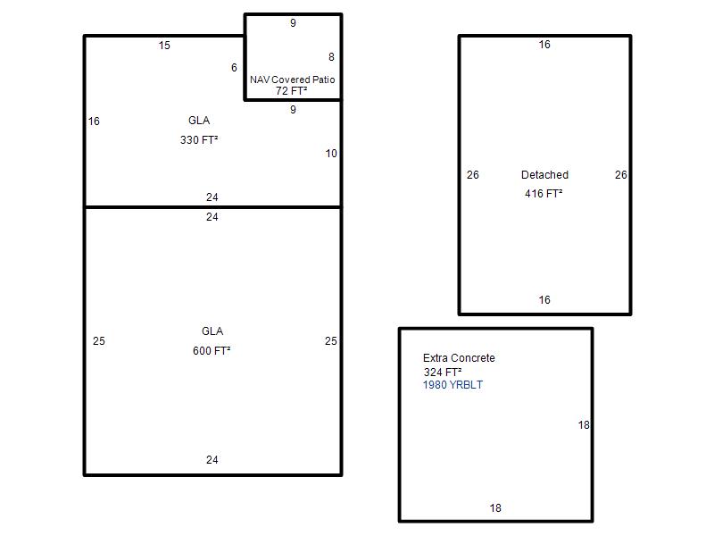 | Garage, Porch, Basement, Storage, Utility etc. (GLA=Gross Living Area GBA=Gross Bldg Area) | ||||