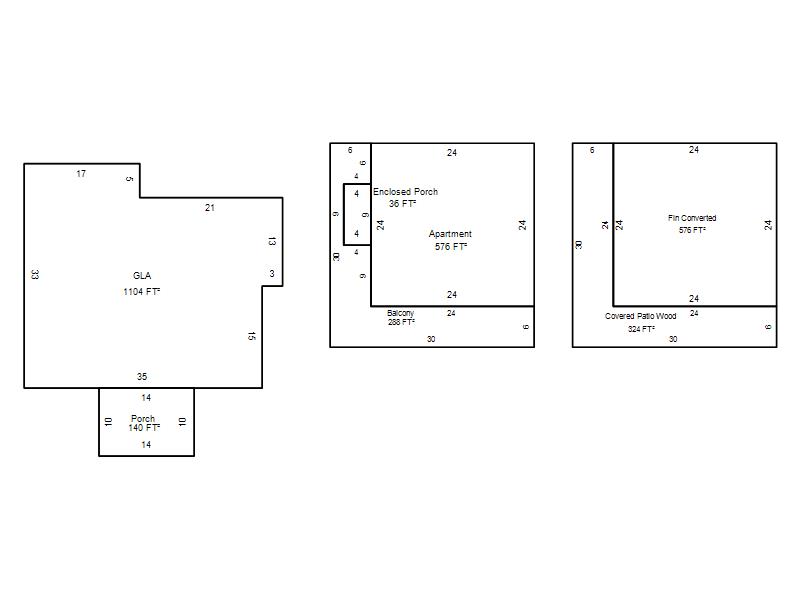 | Garage, Porch, Basement, Storage, Utility etc. (GLA=Gross Living Area GBA=Gross Bldg Area) | ||||