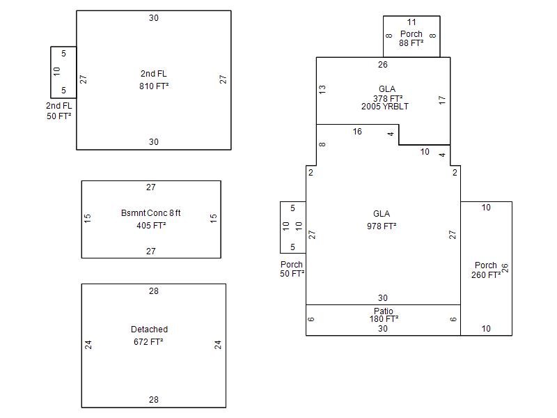 | Garage, Porch, Basement, Storage, Utility etc. (GLA=Gross Living Area GBA=Gross Bldg Area) | ||||