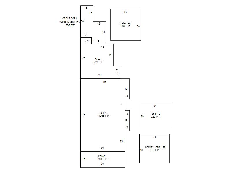 | Garage, Porch, Basement, Storage, Utility etc. (GLA=Gross Living Area GBA=Gross Bldg Area) | ||||