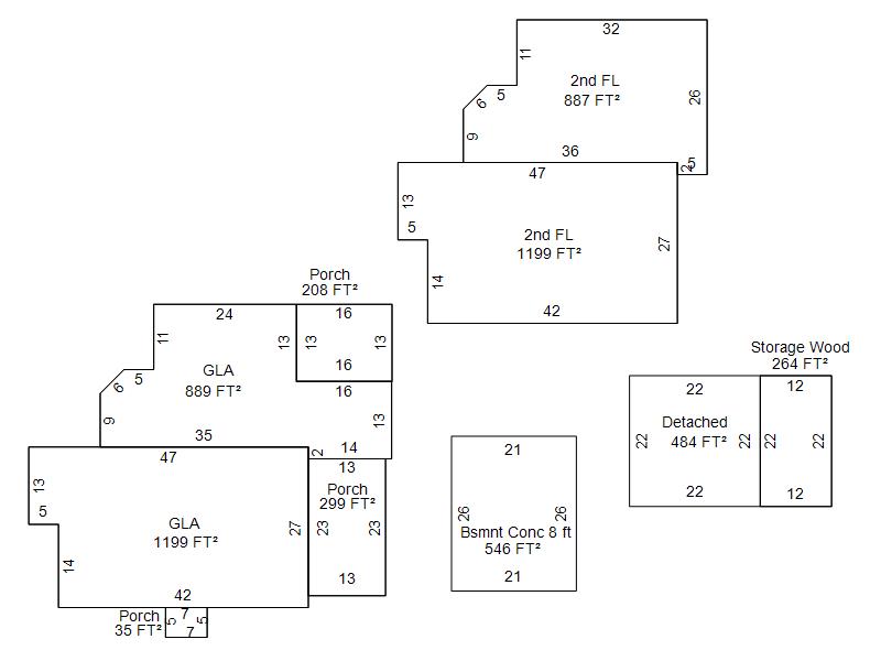 | Garage, Porch, Basement, Storage, Utility etc. (GLA=Gross Living Area GBA=Gross Bldg Area) | ||||