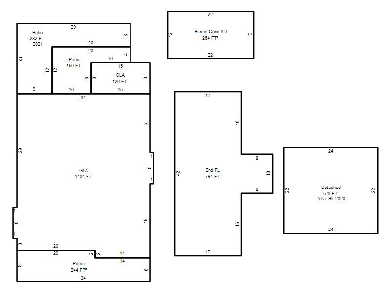 | Garage, Porch, Basement, Storage, Utility etc. (GLA=Gross Living Area GBA=Gross Bldg Area) | ||||