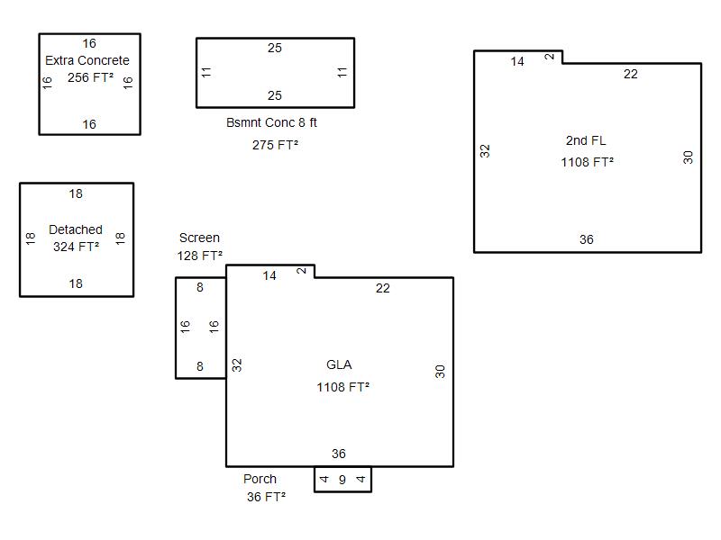 | Garage, Porch, Basement, Storage, Utility etc. (GLA=Gross Living Area GBA=Gross Bldg Area) | ||||