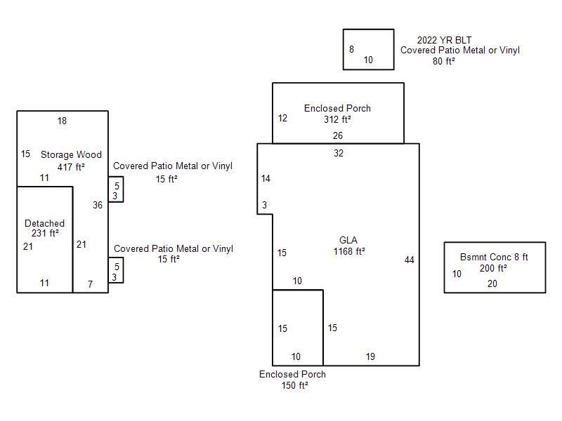 | Garage, Porch, Basement, Storage, Utility etc. (GLA=Gross Living Area GBA=Gross Bldg Area) | ||||