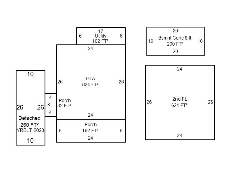 | Garage, Porch, Basement, Storage, Utility etc. (GLA=Gross Living Area GBA=Gross Bldg Area) | ||||