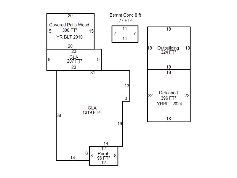 | Garage, Porch, Basement, Storage, Utility etc. (GLA=Gross Living Area GBA=Gross Bldg Area) | ||||