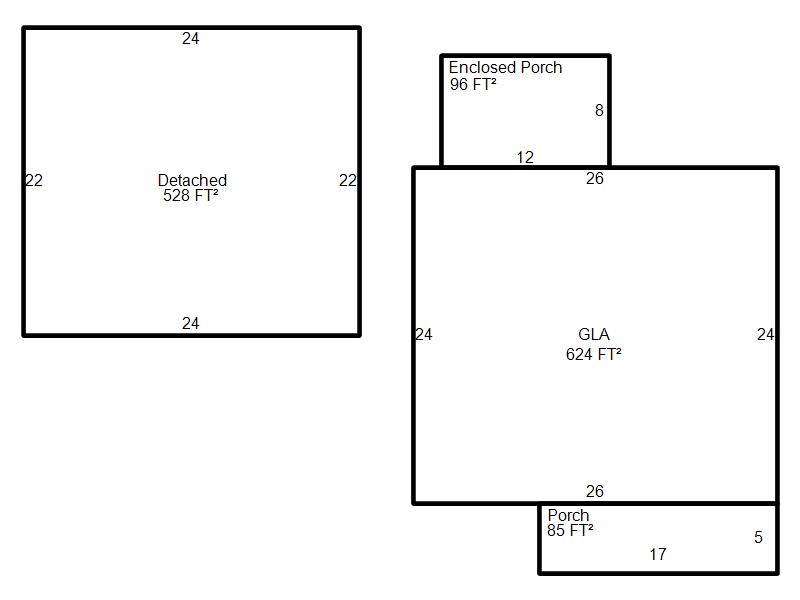 | Garage, Porch, Basement, Storage, Utility etc. (GLA=Gross Living Area GBA=Gross Bldg Area) | ||||