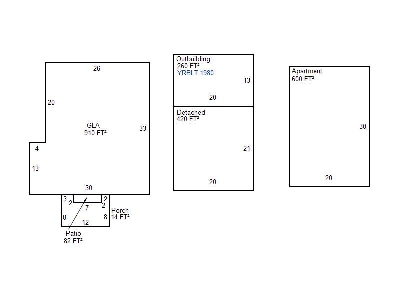 | Garage, Porch, Basement, Storage, Utility etc. (GLA=Gross Living Area GBA=Gross Bldg Area) | ||||
