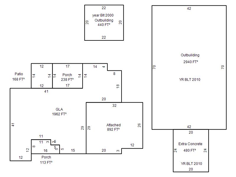 | Garage, Porch, Basement, Storage, Utility etc. (GLA=Gross Living Area GBA=Gross Bldg Area) | ||||