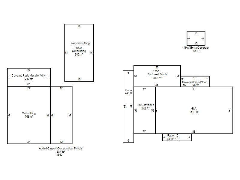 | Garage, Porch, Basement, Storage, Utility etc. (GLA=Gross Living Area GBA=Gross Bldg Area) | ||||