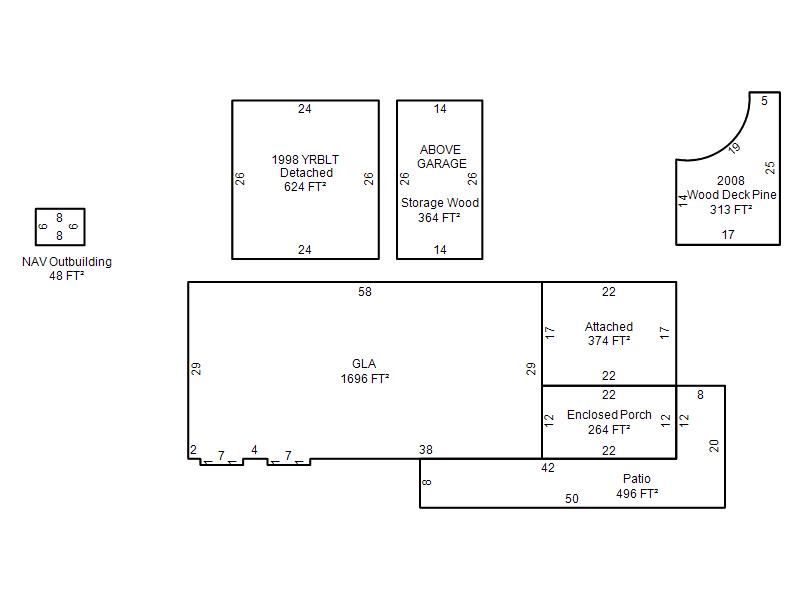 | Garage, Porch, Basement, Storage, Utility etc. (GLA=Gross Living Area GBA=Gross Bldg Area) | ||||
