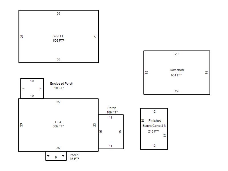 | Garage, Porch, Basement, Storage, Utility etc. (GLA=Gross Living Area GBA=Gross Bldg Area) | ||||