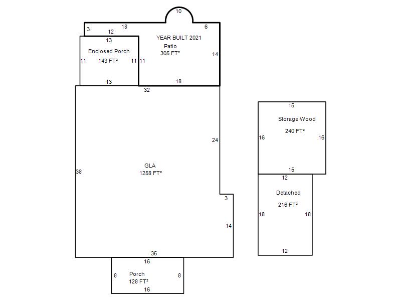 | Garage, Porch, Basement, Storage, Utility etc. (GLA=Gross Living Area GBA=Gross Bldg Area) | ||||