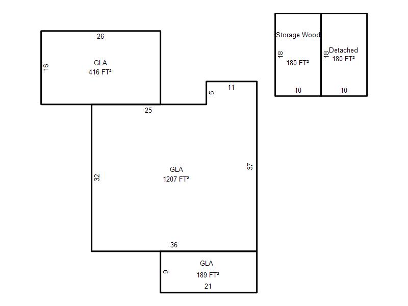 | Garage, Porch, Basement, Storage, Utility etc. (GLA=Gross Living Area GBA=Gross Bldg Area) | ||||