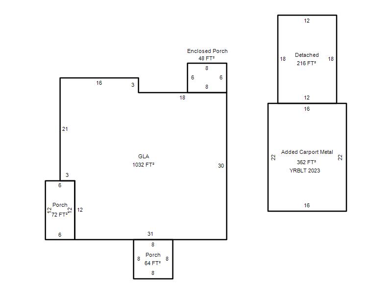 | Garage, Porch, Basement, Storage, Utility etc. (GLA=Gross Living Area GBA=Gross Bldg Area) | ||||