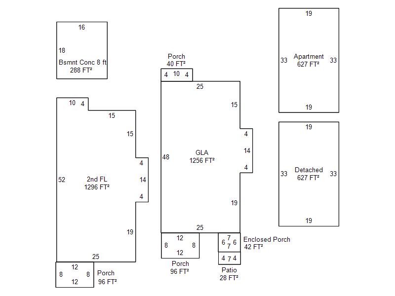 | Garage, Porch, Basement, Storage, Utility etc. (GLA=Gross Living Area GBA=Gross Bldg Area) | ||||
