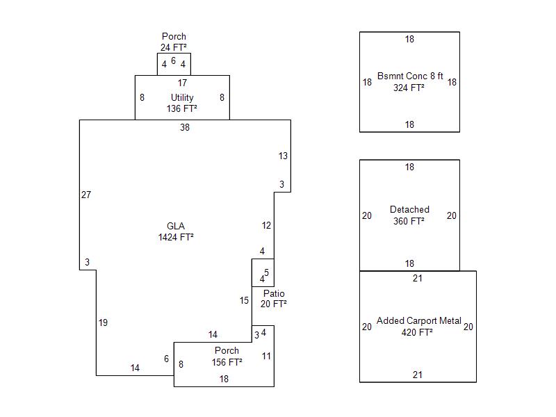 | Garage, Porch, Basement, Storage, Utility etc. (GLA=Gross Living Area GBA=Gross Bldg Area) | ||||