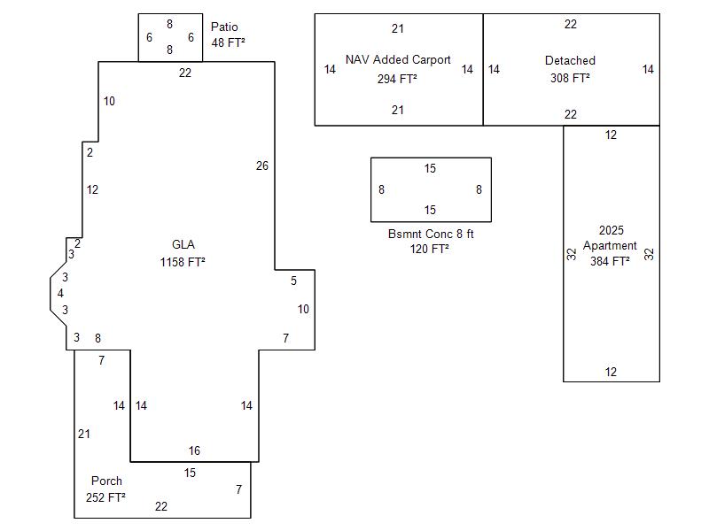 | Garage, Porch, Basement, Storage, Utility etc. (GLA=Gross Living Area GBA=Gross Bldg Area) | ||||