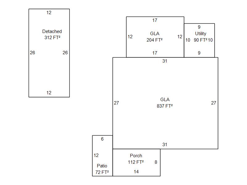 | Garage, Porch, Basement, Storage, Utility etc. (GLA=Gross Living Area GBA=Gross Bldg Area) | ||||