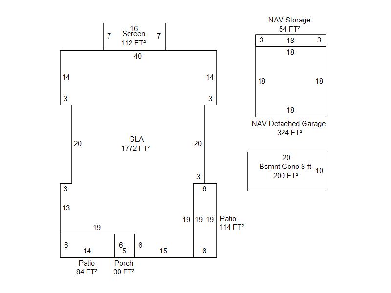 | Garage, Porch, Basement, Storage, Utility etc. (GLA=Gross Living Area GBA=Gross Bldg Area) | ||||