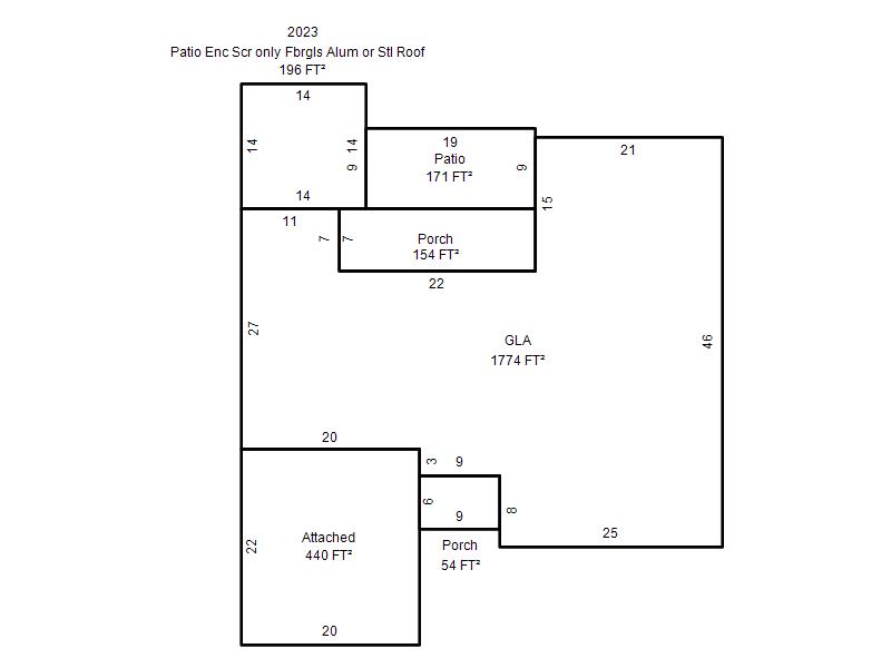 Patio Enc Scr only Fbrgls Alum or Stl Roof |